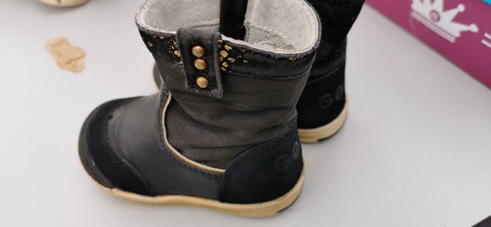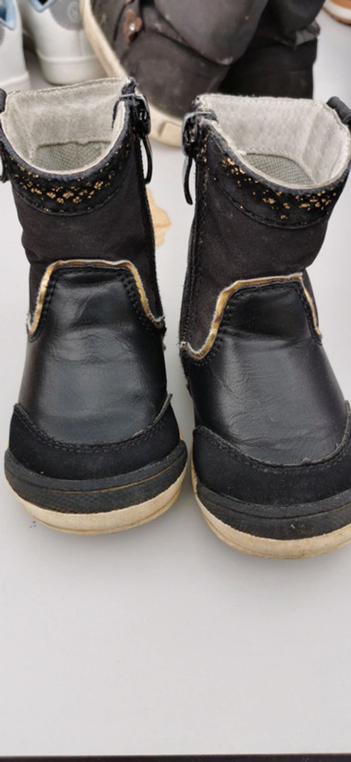 Bien portées mais reste en bon état. Bottes taille 19. Noires avec liseré doré.