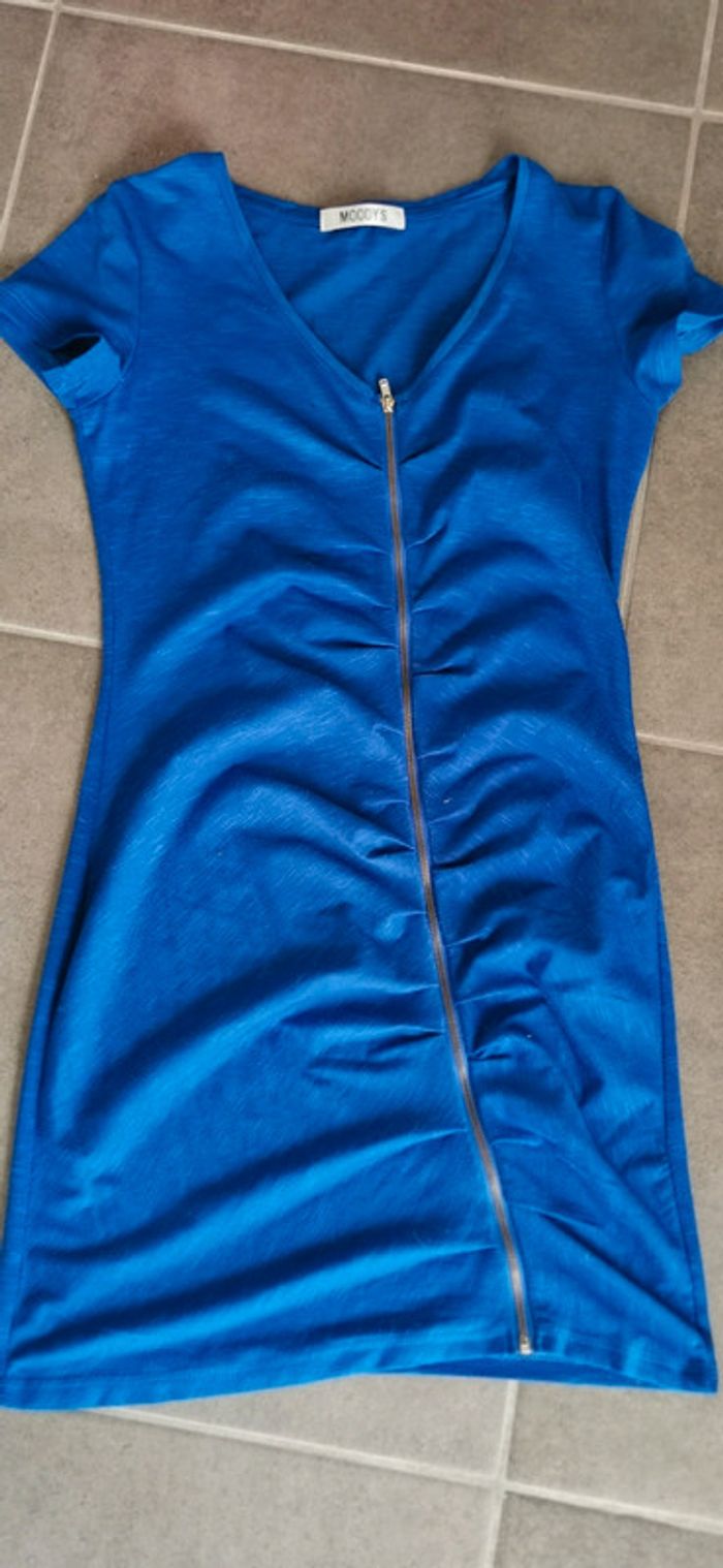 Robe d'été de couleur bleu électrique. Très joli rendu une fois porté. Marque Moody's. Taille XS.