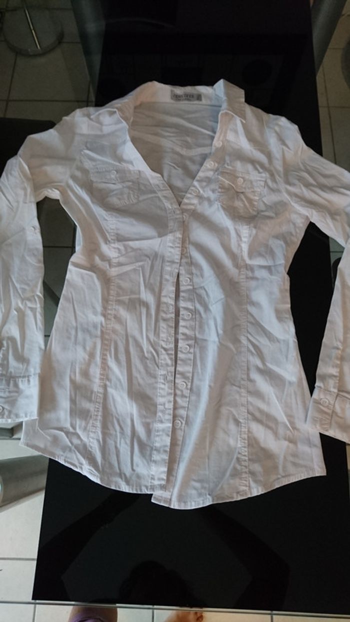 mis deux fois, vends ce chemisier blanc car il me serre trop au niveau de la poitrine. acheté chez Jennyfer 22e.