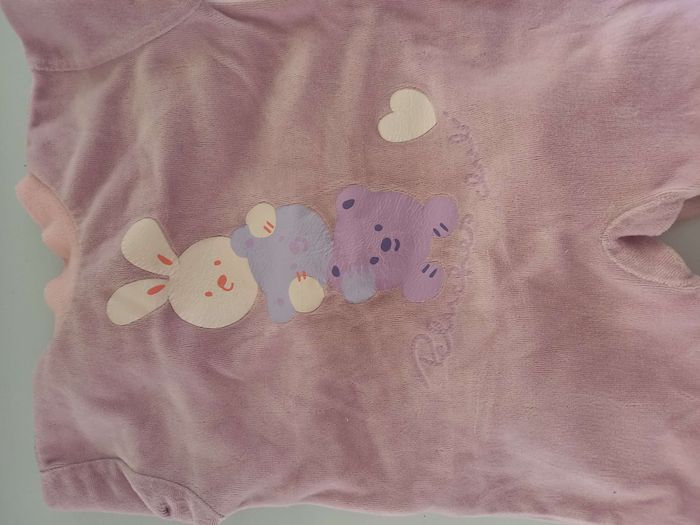 Pyjama pour bébé fille taille 6 mois Très bon état il y a juste un trou derrière car il manque la pression pour fermer