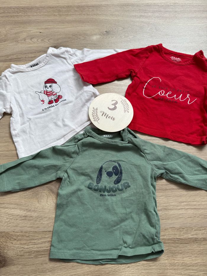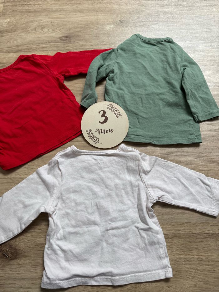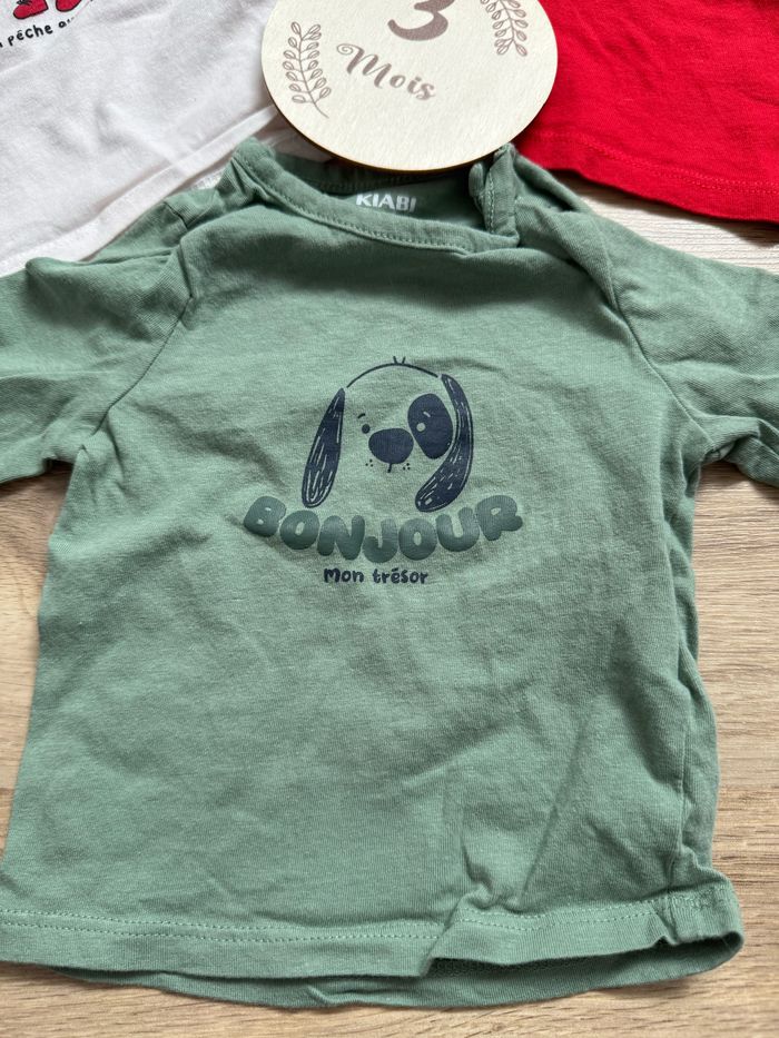 Lot de 3 hauts garçon Kiabi 3mois Très bon état Ouverture à l’épaule avec deux boutons #3mois #bebegarcon #haut #pull #t-shirt #teeshirt #kiabi