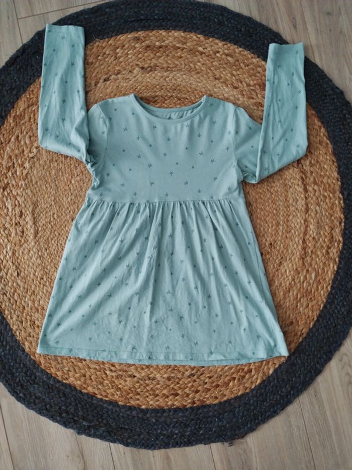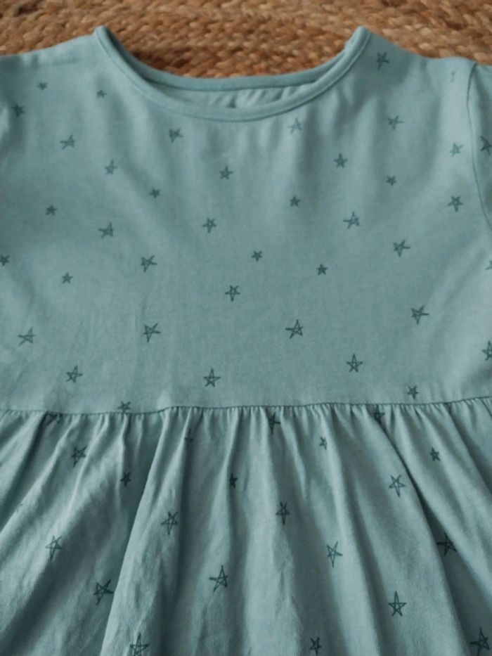 Robe tunique, d'un bleu vert clair avec petites étoiles. En très bon état, peu portée. Marque Tex. Taille 5/6 ans D'autres vêtements avec #CocoRalie40_fille_5ans #CocoRalie40_fille_6ans Réductions activées sur les lots 😊