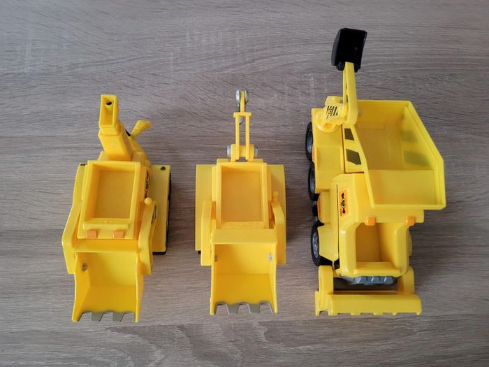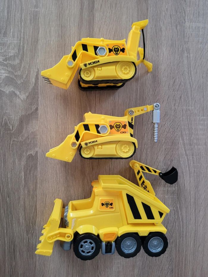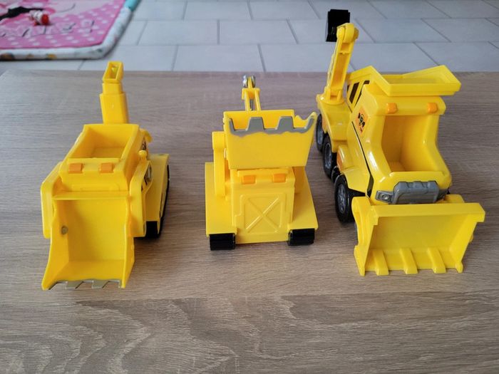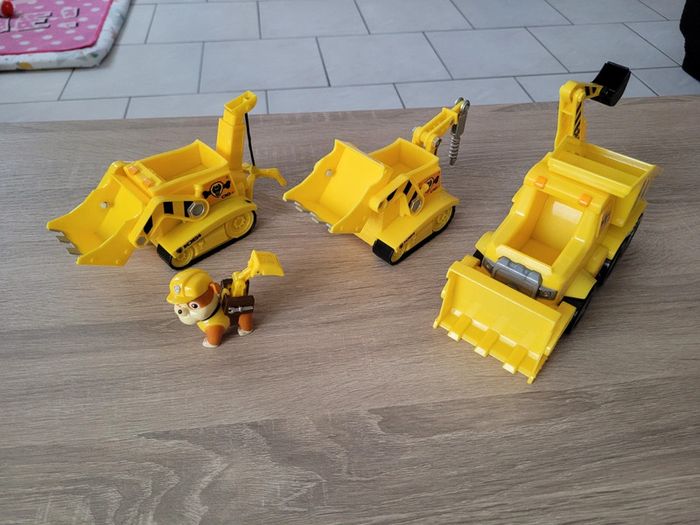 Vend lot de 3 véhicules de la Pat patrouille avec le personnage de Ruben en très bon état juste des petits signes d'usures liés au jeu (voir photos). Lot comprenant 3 tractopelles différentes de Ruben, une avec un crochet, une avec un forage et un camion tractopelle avec une pelle. Vendu tel que sur la publication.