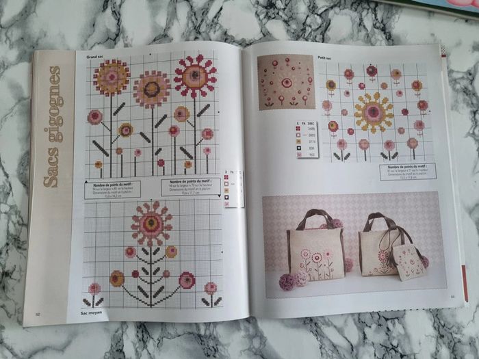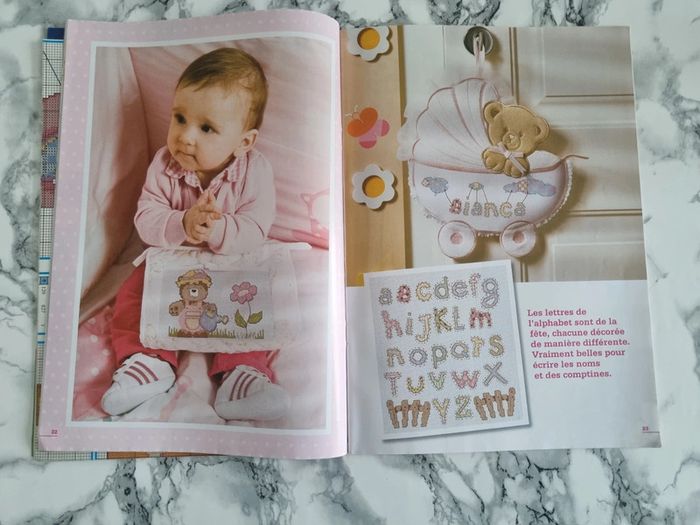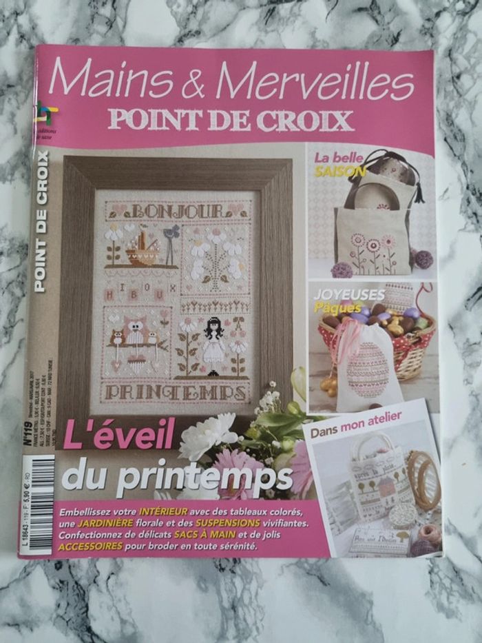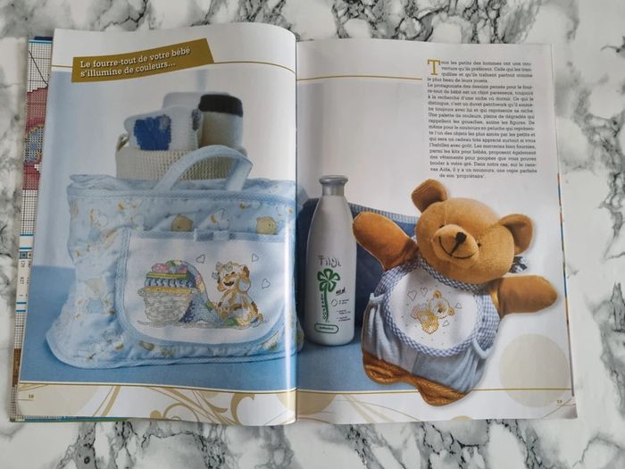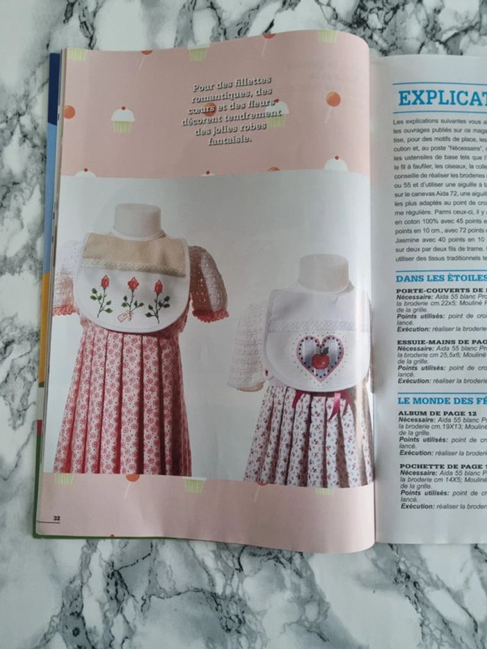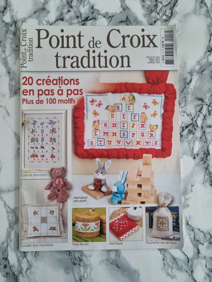 Lot de 9 catalogues point de croix Énormément de modèle d'inspirations et d'explications De tout, pour bébé, pour la décoration, cadre, nappes... En bon état