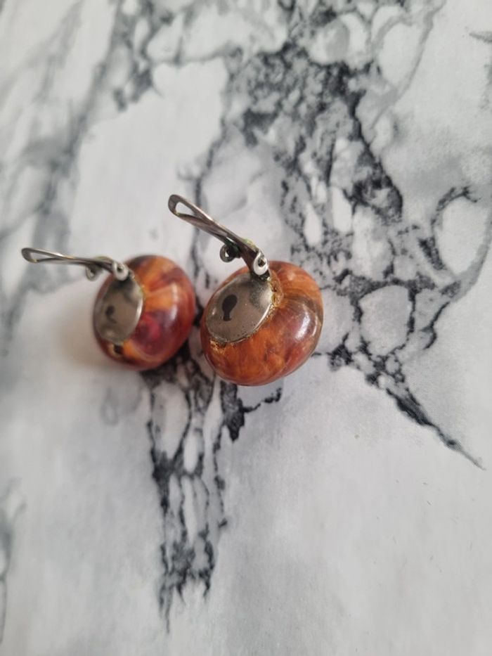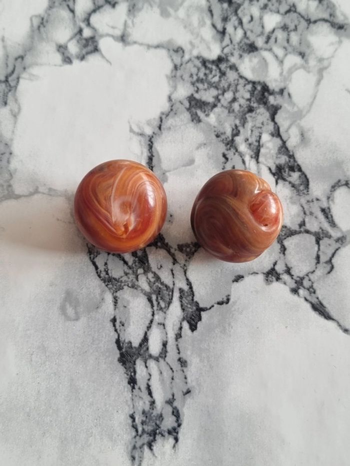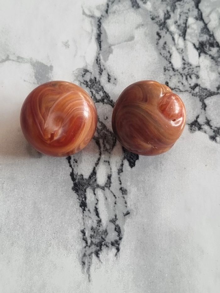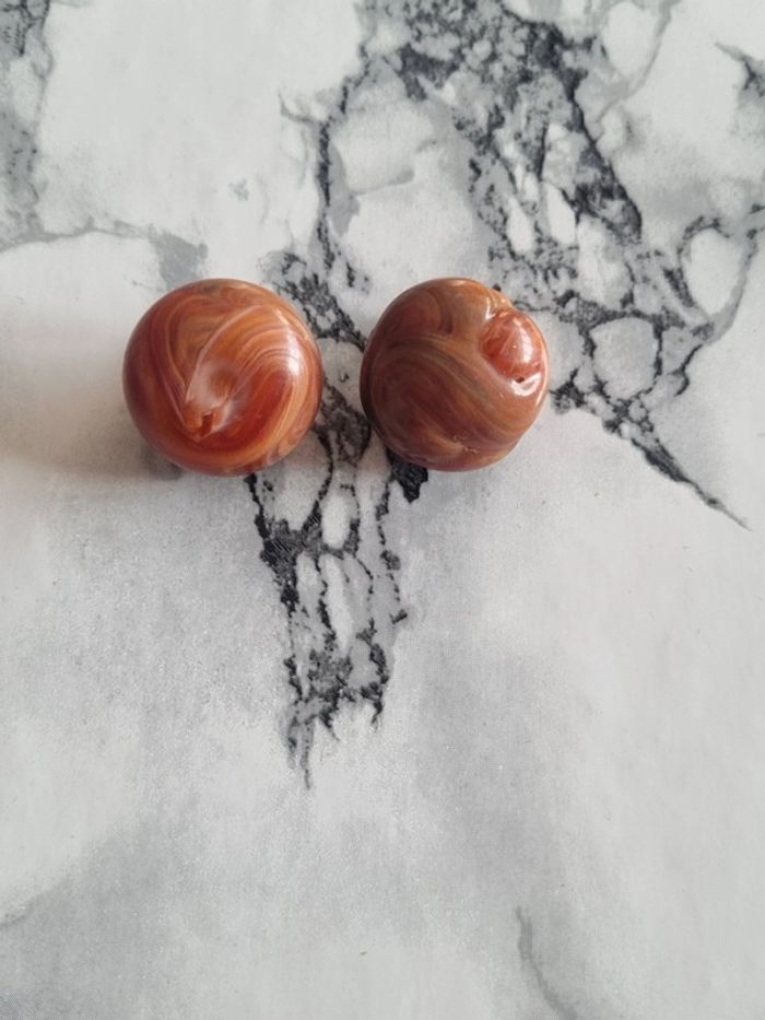Magnifique boucle d'oreille ronde Dans les tons marronné Elle sont à clips Vintage, année '80 En bon état Dimensions : - Circonférence : 3 cm