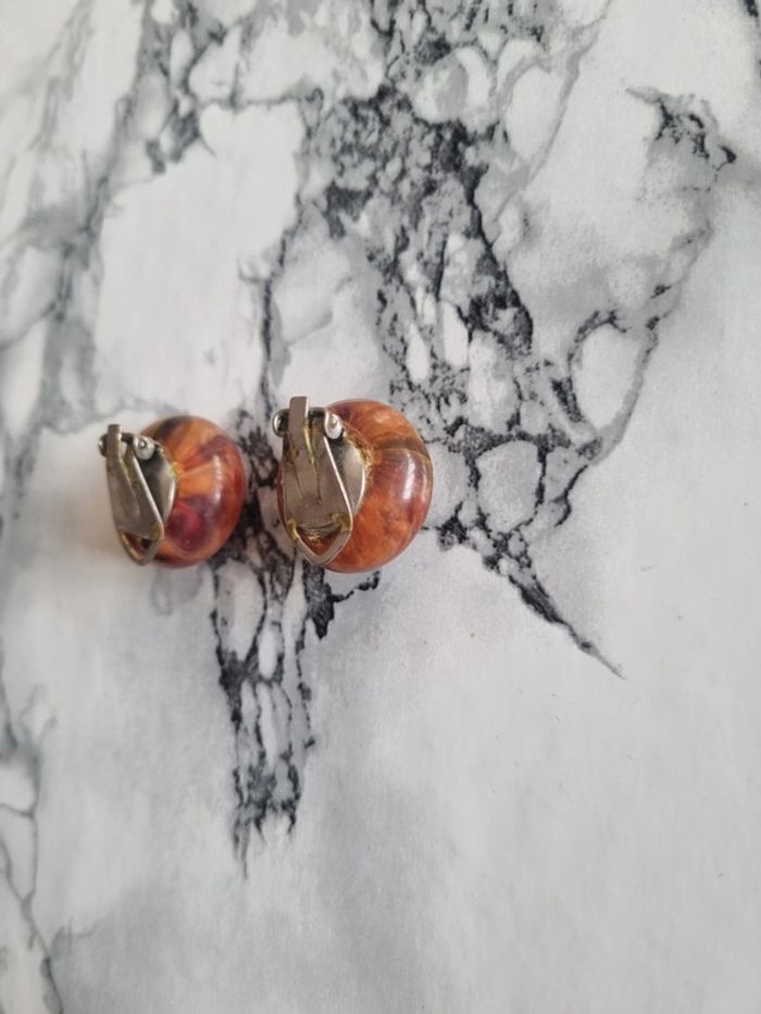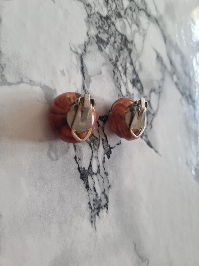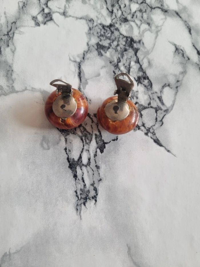 Boucle d'oreille ronde marron clips vintage - photo numéro 13