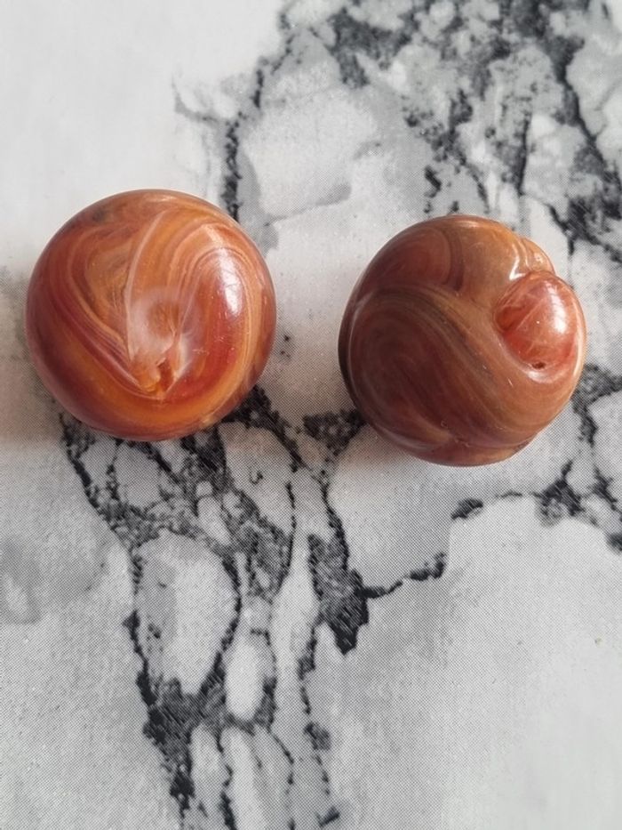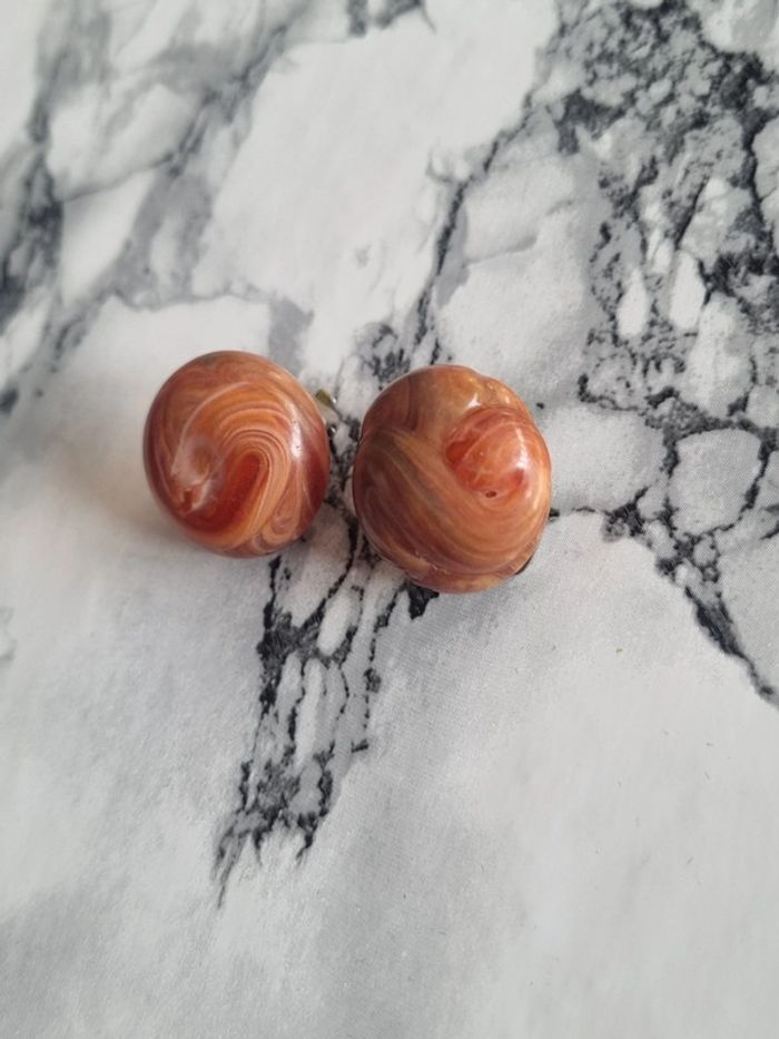 Boucle d'oreille ronde marron clips vintage - photo numéro 1