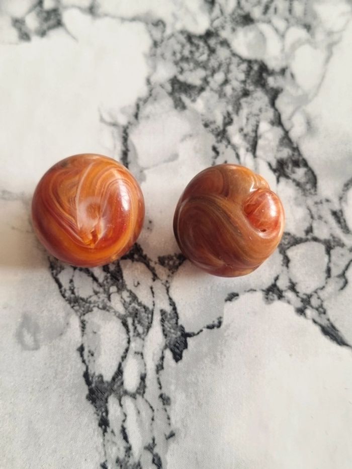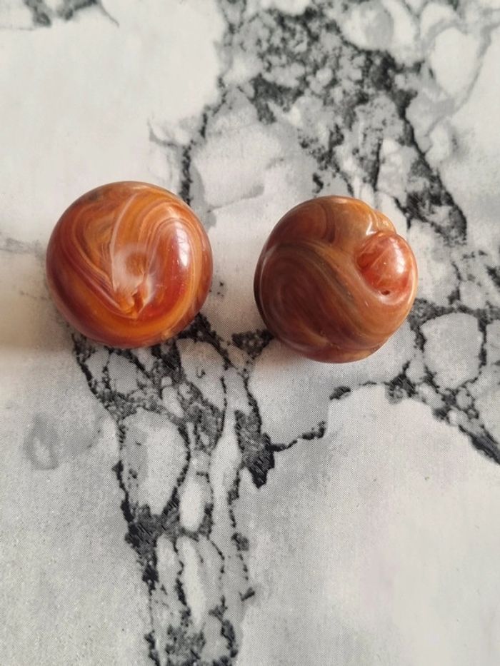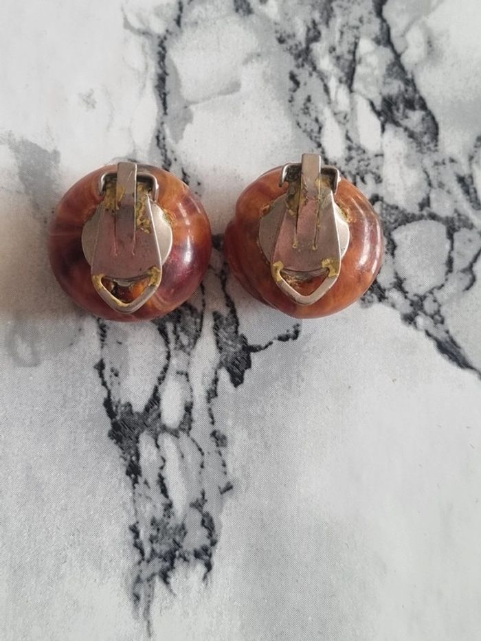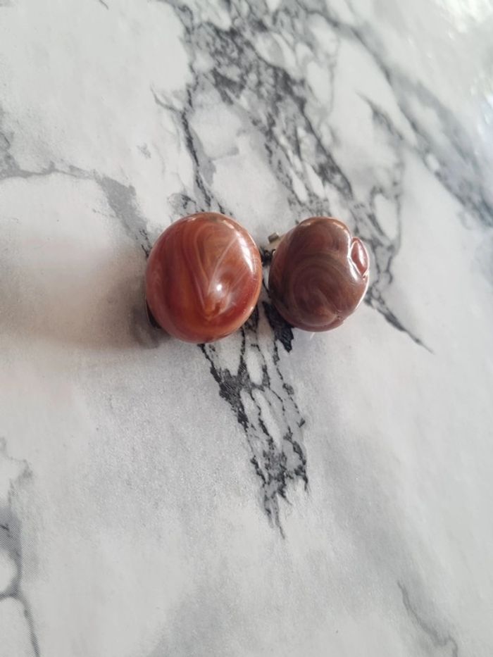 Boucle d'oreille ronde marron clips vintage - photo numéro 14