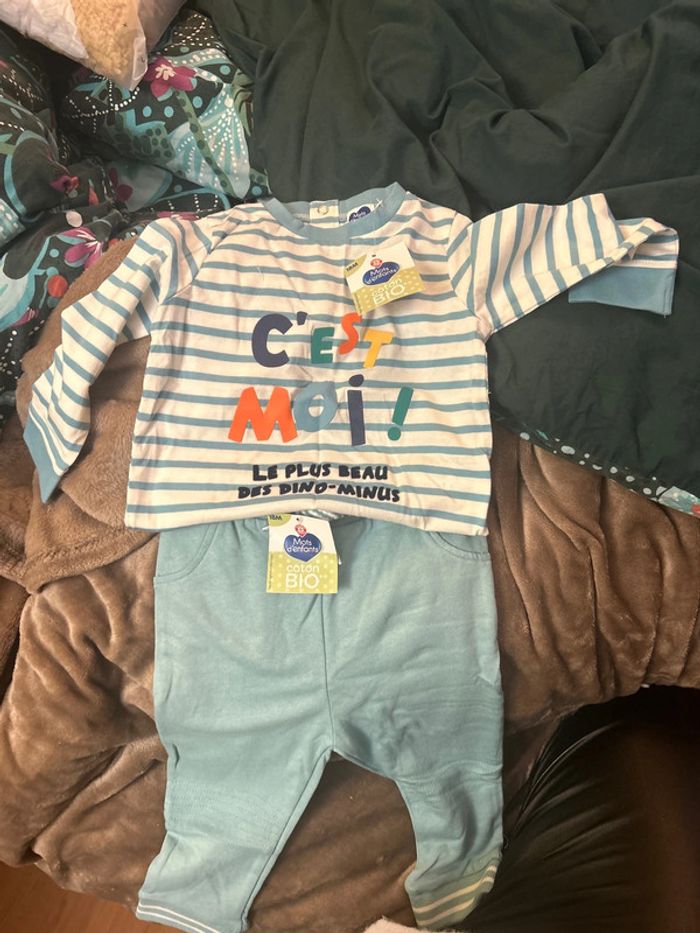 À vendre, jolie tenue, bébé de la marque mots d’enfants en taille 18 mois, composé d’un pantalon de jogging d’un T-shirt manches longues marinière
