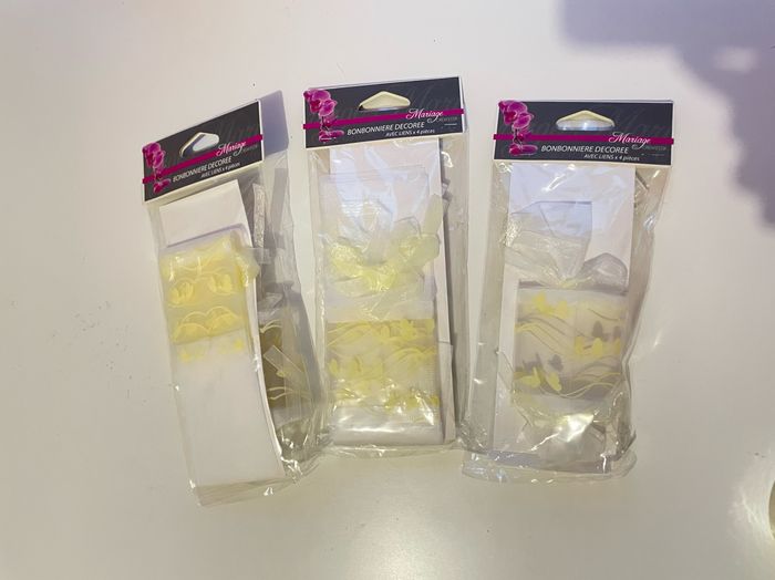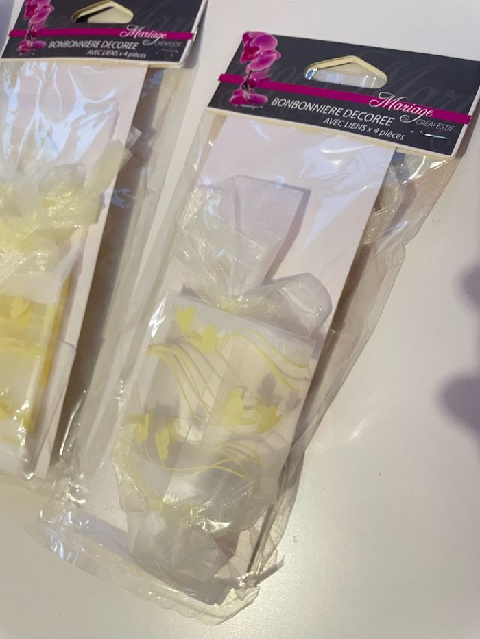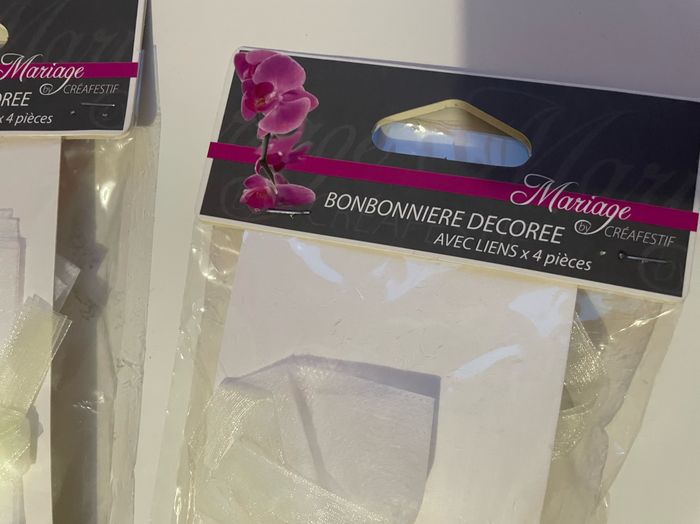 3 paquets de 4 bonbonnières blanches décorées avec liens