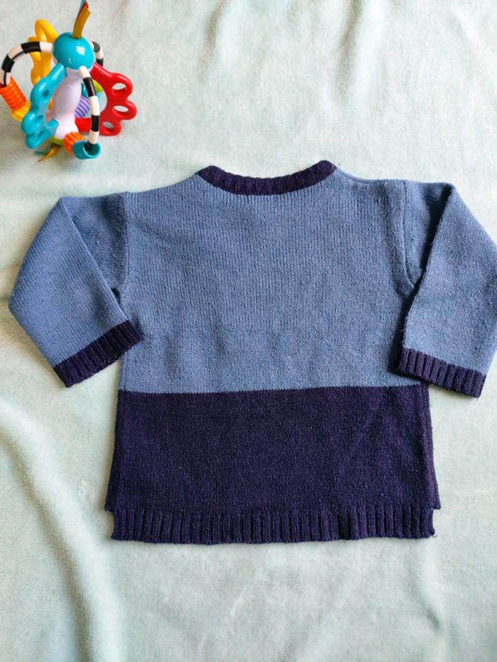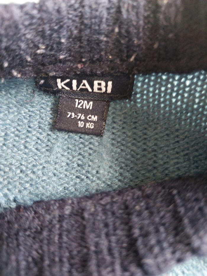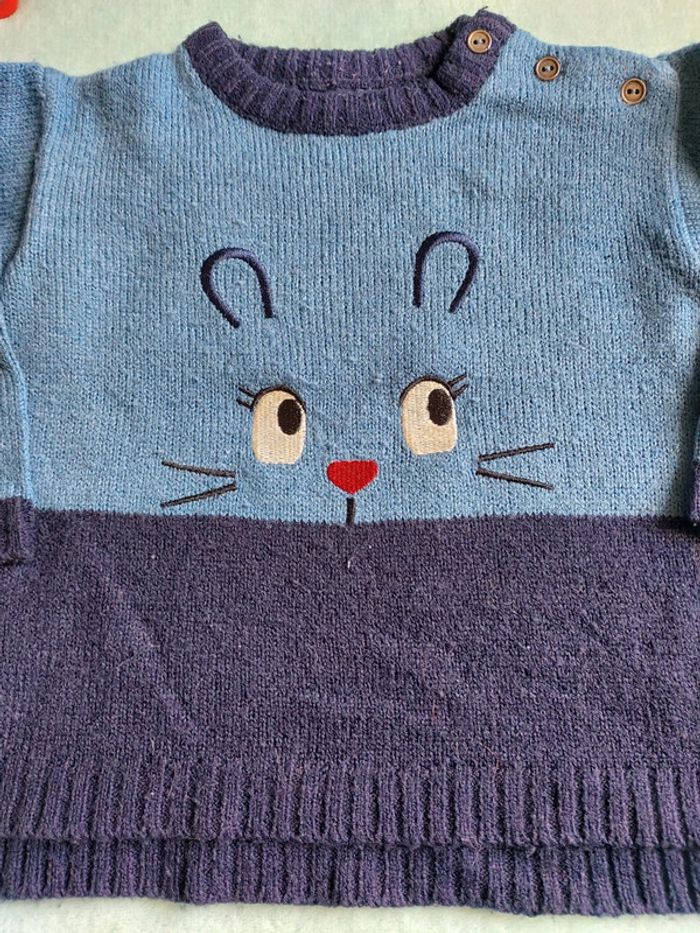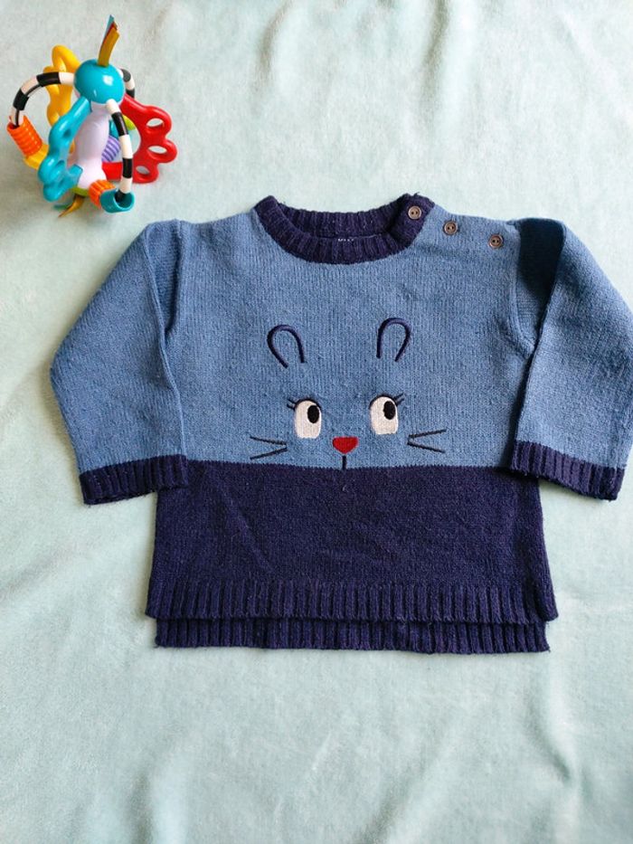 Pull kiabi taille 12 mois avec une petite tête de lapin.