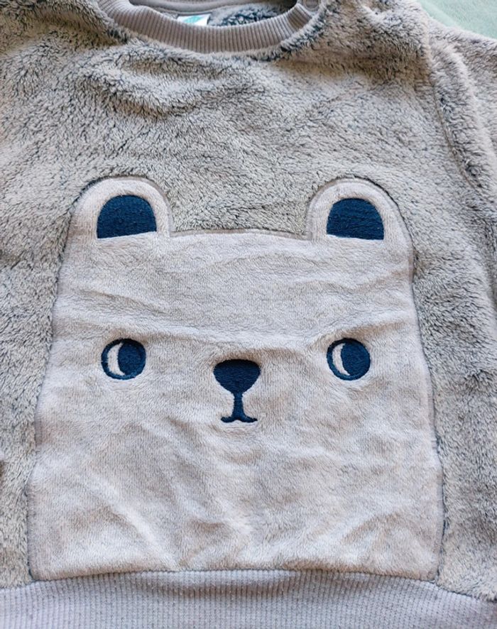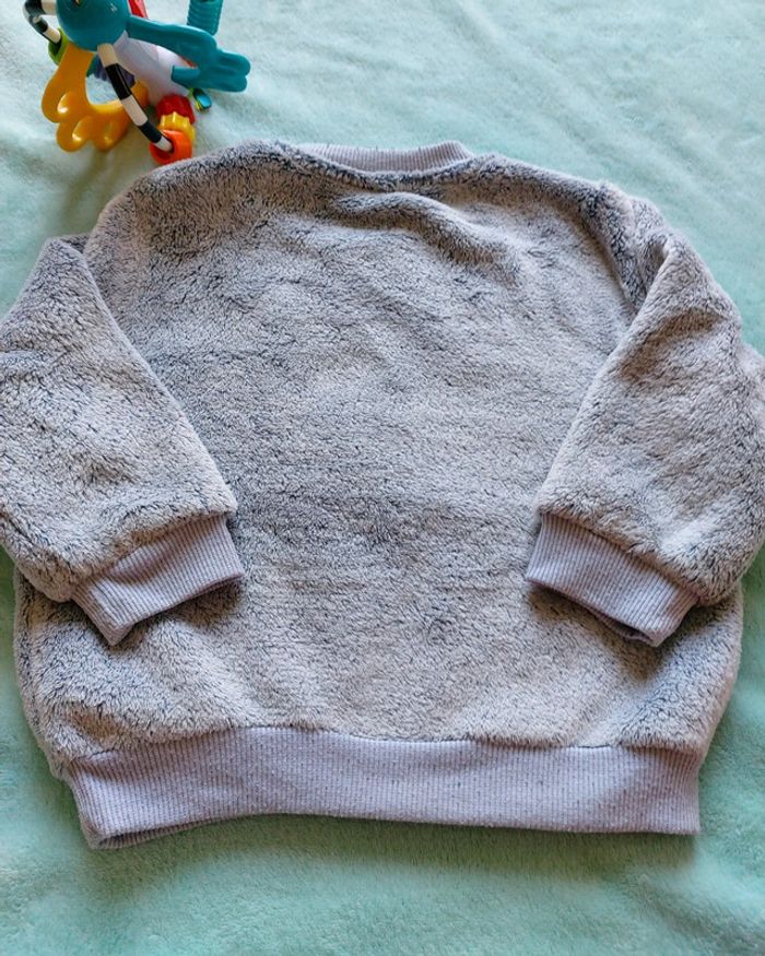 Pull tout doux TEX taille 18 mois couleur bleu-gris.