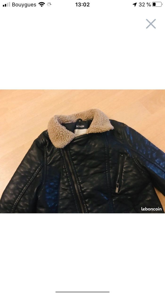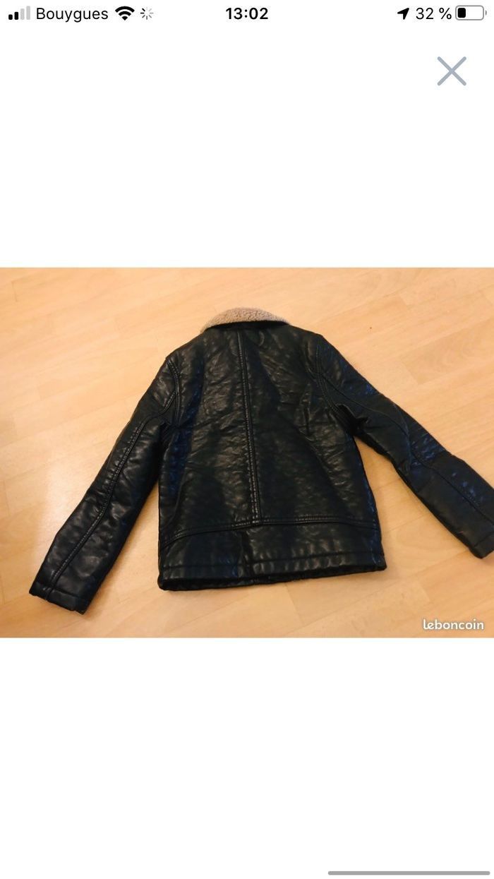 Veste faux cuir garçon taille 8 ans couleur noir fermeture éclaire poches avant Très bon état (c)