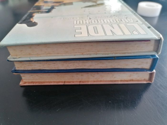 Quelques tâches sur la tranche et la couverture (voir photos) Couverture légèrement abîmée dans les coins Écriture sur la 1ère page (voir photos)