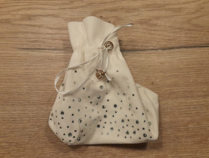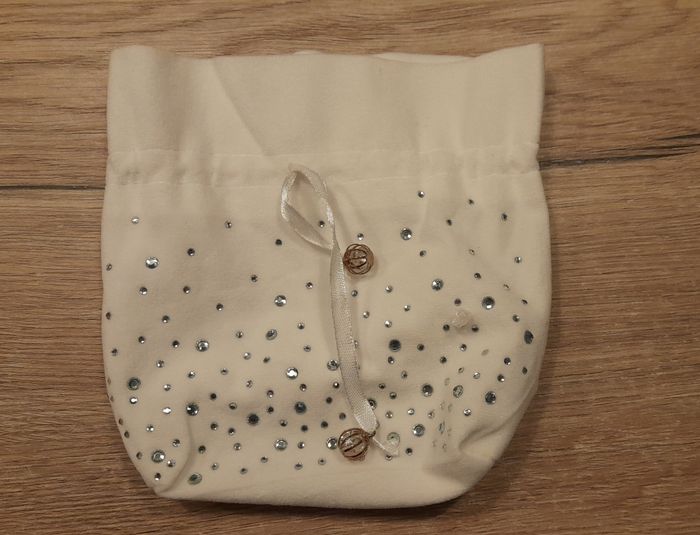 Pochette beauté Blanche avec strass argenté incrusté Se ferme par ruban