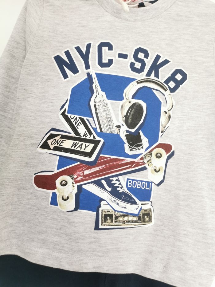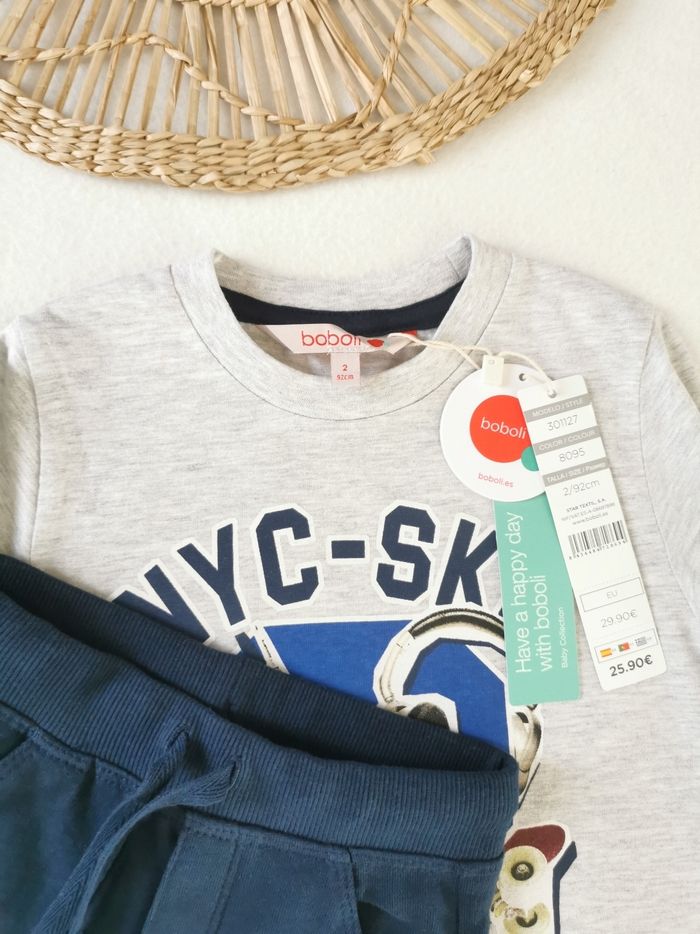 🧑 Ensemble survêtement 🧑 Boboli 🖊️ ÉTAT ✅️: Parfait👌 - Avec étiquette🏷️ - Jamais porté 🆕 🖊️ DESCRIPTION: ▪️Taille 2 Ans - 92 cm ▪️TEE-SHIRT manches longues ▪️Matière: 97% coton - 3% viscose ▪️Col rond ▪️Impression NYC 🛹🎧 sur l'avant ▪️Couleur: Gris chiné ▪️PANTALON jogger assorti ▪️Matière: 99% coton - 1% elasthanne ▪️Taille elastiquée côtelée avec cordons de serrage ▪️2 Poches latérales ▪️Couleur: Bleu marine 🟦 💰Prix boutique: 29.90€ 💚