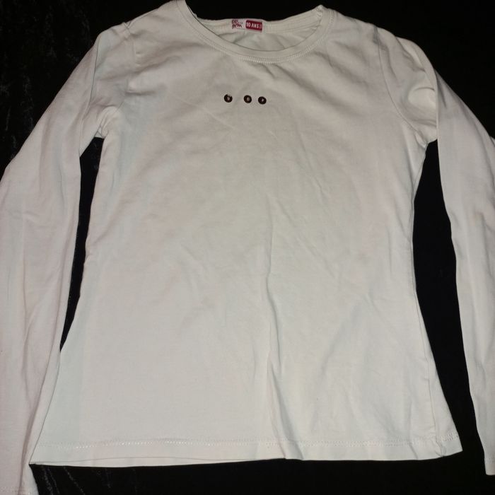 T-shirt pour enfant 10 ans, en très bon état couleur blanc, manches longues, marque : Dpam.