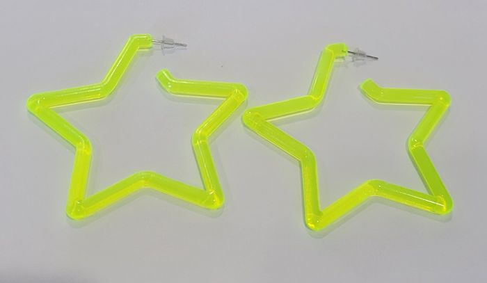 BOUCLES D'OREILLES ANNEAUX CREOLES ETOILE JAUNE FLUO SOIREE ANNEE 80 ! NEUF - photo numéro 3
