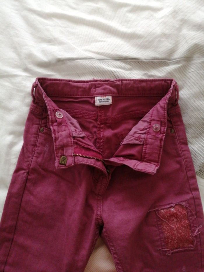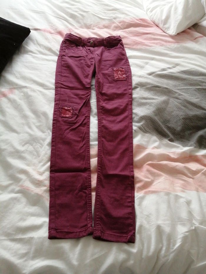 Jean slim fille 12 ans (152cm) Des strass sur les jambes Très peu porté en parfait état Taille réglable et fermeture par bouton agrafe et fermeture éclair #Daddy11fille12ans