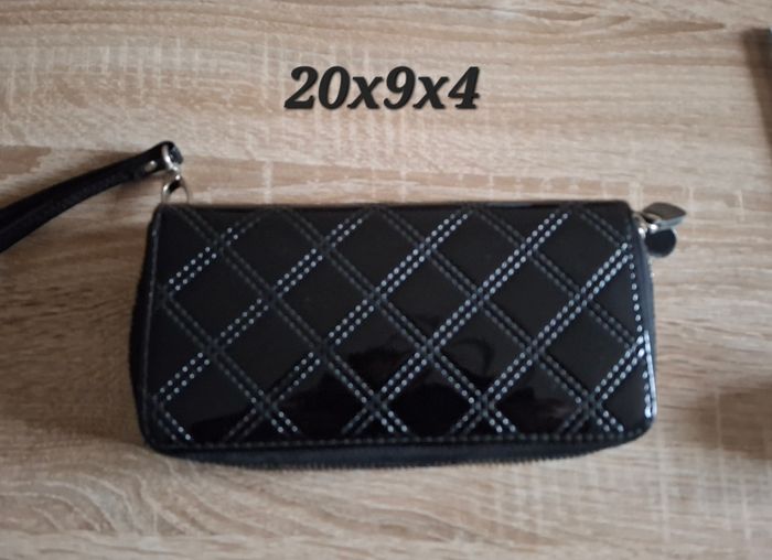 Porté monnaie et porte carte noir en simili cuir vernis..2 poches zippées