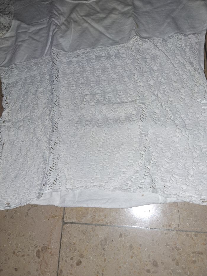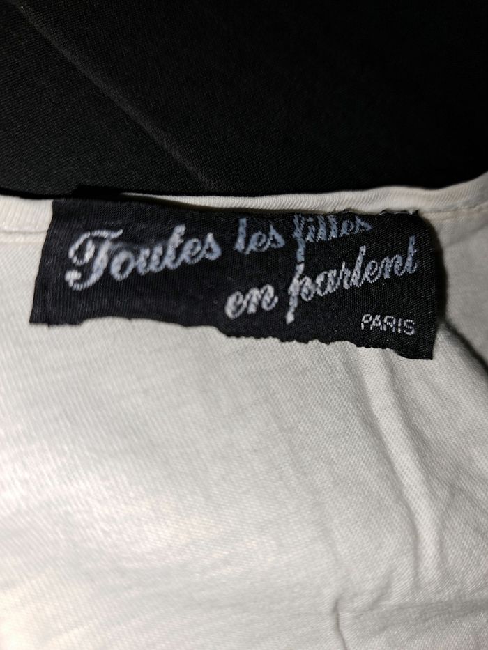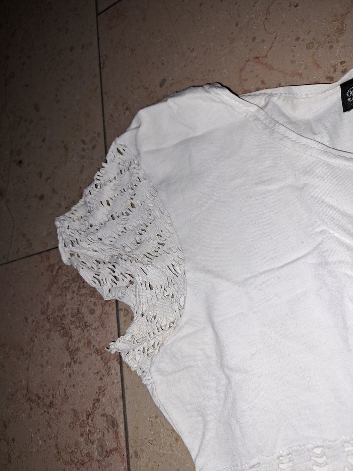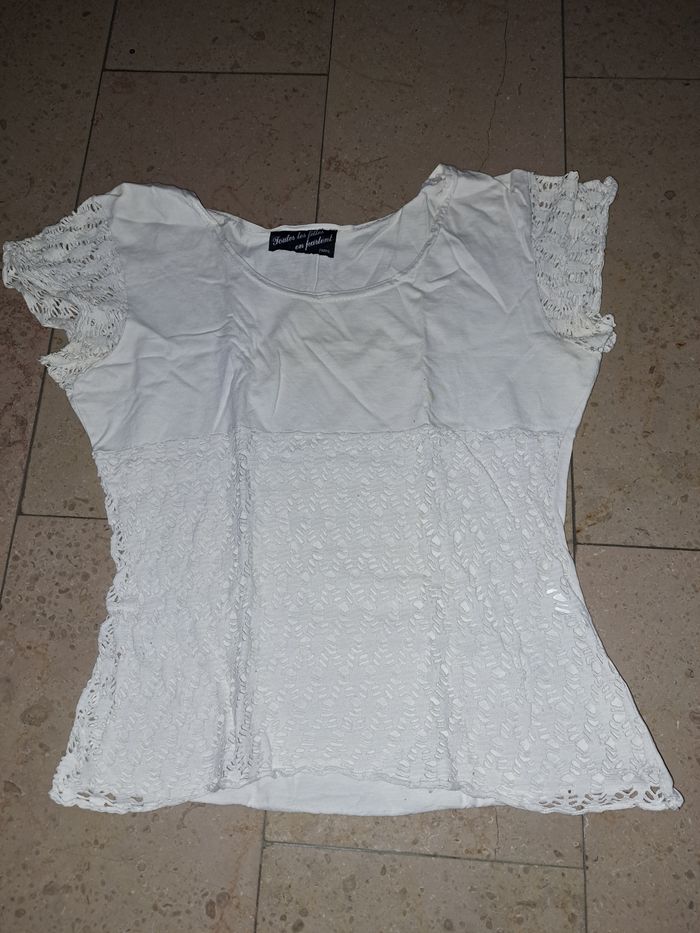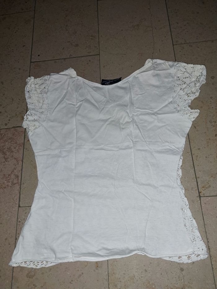 T-shirt femme Taille unique Couleur blanc Effet dentelle sur le ventre et sur les manches Marque Toutes les filles en parlent État impeccable