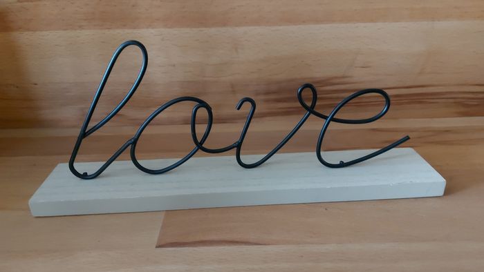 Décoration en bois, écriture en métal L 28 x l 5 x ht 10,5 cm