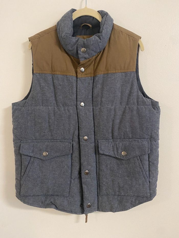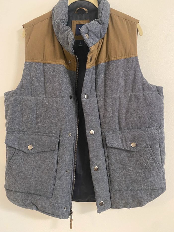 Doudoune matelassé sans manche homme Marque : GAP couleur : bleu et marron Taille S État impeccable Longueur 66 cm