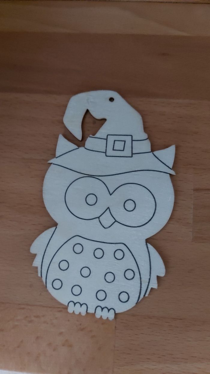 Suspension en bois, hibou, à peindre Ht 12 x L 7 cm