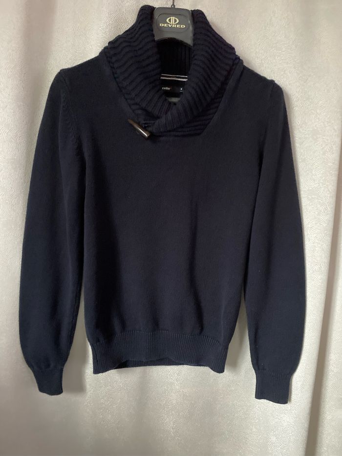 Beau pull homme bleu marine foncé col châle S Celio - photo numéro 1