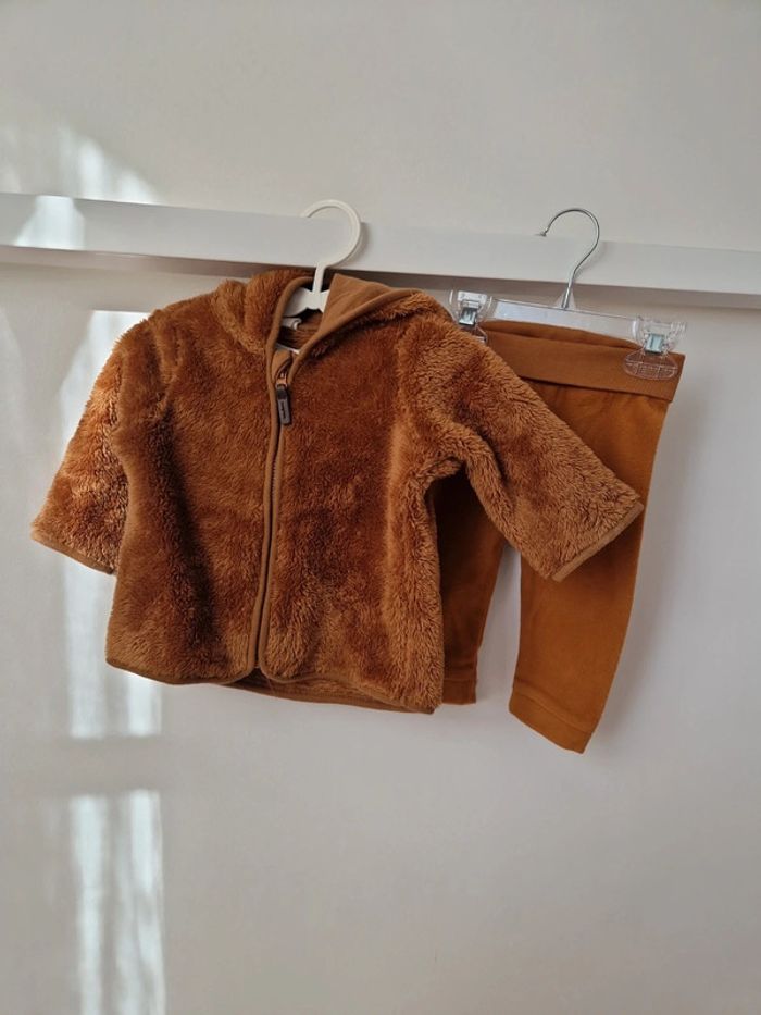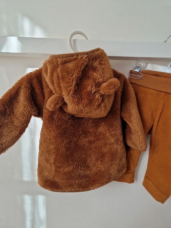 Ensemble peluche veste capuche ourse pantalon mixte 4-6mois très bon état H&M