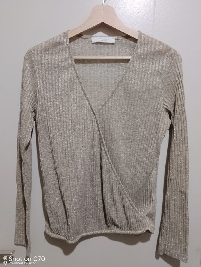 Haut manches longues Promod Cache coeur croisé Brillant doré taille 38 40 (étiquette coupée) Bas élastique Tout le femme ici 👇 #angiolinolino_femme