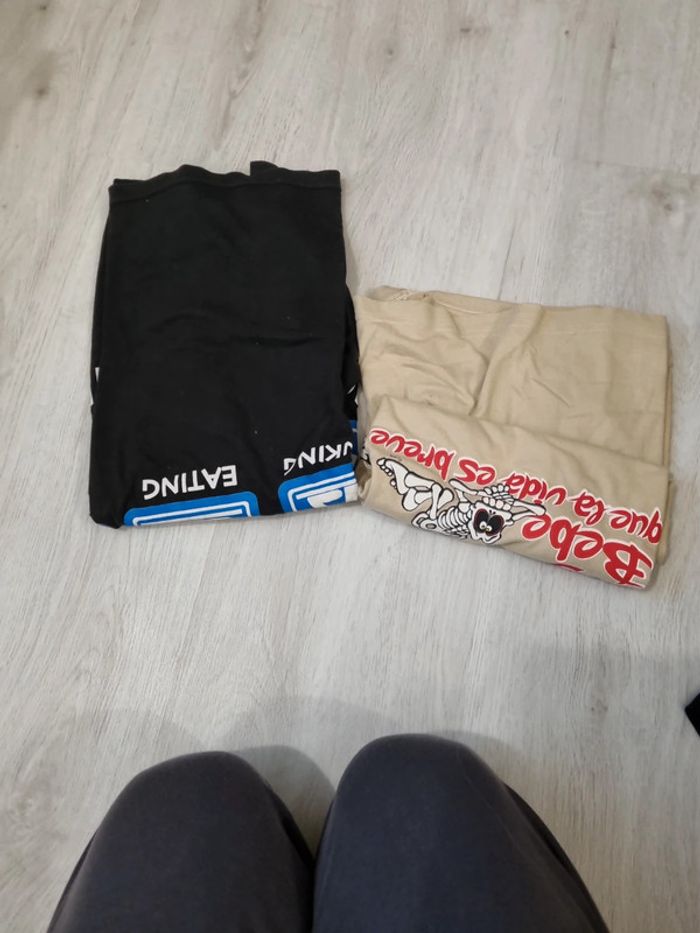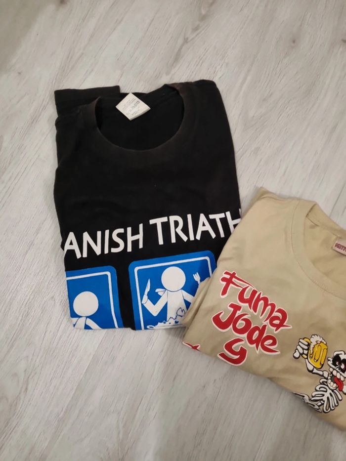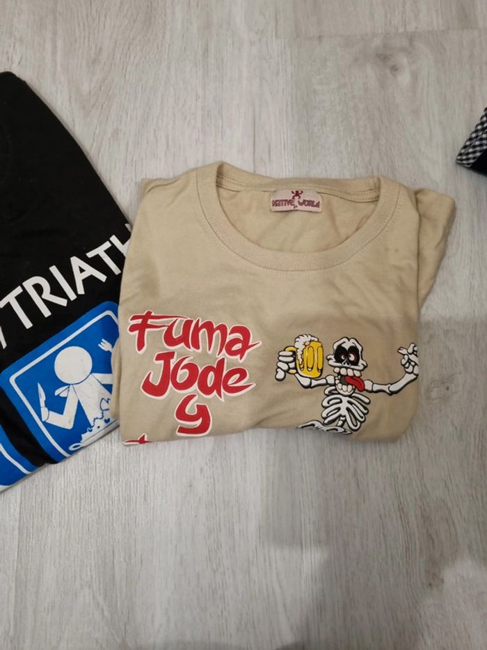 Lot 2 tee-shirts humoristiques espagnols, coton, manches courtes, S-M. Le noir couleur passée #somara66hommem