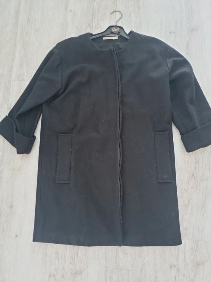 Manteau kookai noir 38, 80 % laine et 20% polyamide, boutons cachés, 89 cm de long, 58 cm de large aisselle à aisselle #somara66femme38