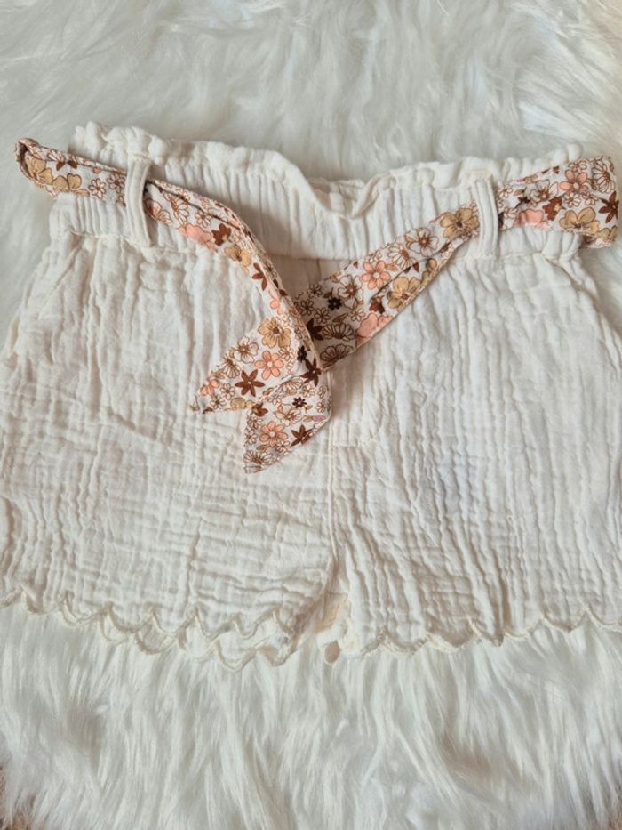 🤍 Magnifique Short en gaze de coton, ceinture fleurie 12 mois Vertbaudet - photo numéro 2