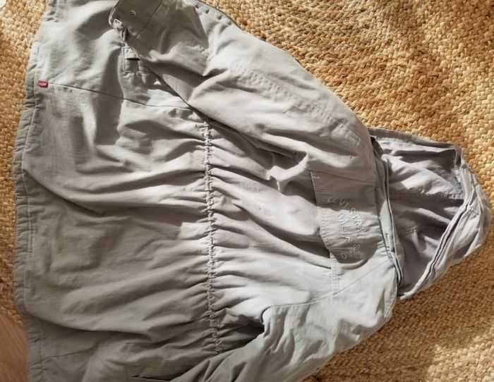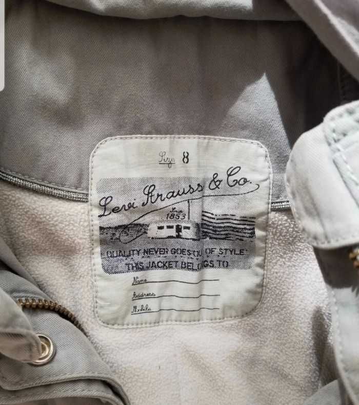Manteau doublé polaire en tres bon état. Capuche qui se roule dans le col quand pas besoin. Lien à la taille pour resserrer si on veut Couleur gris tirant sur le vert.
