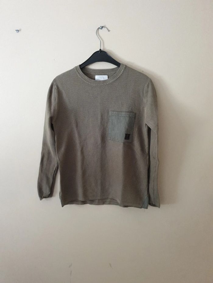 Pull col rond Marque ZARA taille 10 ans Couleur kaki Poche sur le torse côté gauche Excellent état Un coup d oeil dans mon dressing, plein d articles dans le panier et des frais de port réduits 😉