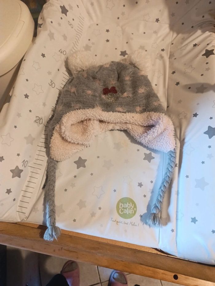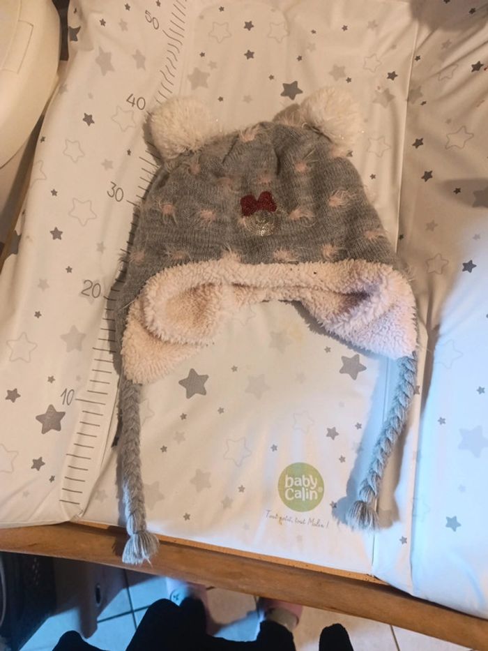 Bonnet Minnie pour fille enfant avec pompon blanc
