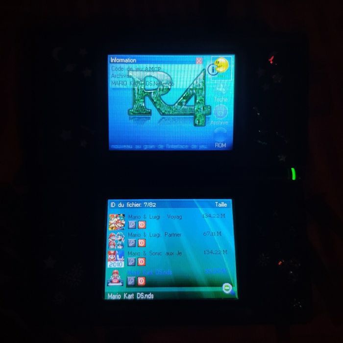 R4i SDHC WifiEngine pour Nintendo DS avec une carte SD contenant + de 190 jeux dont des Mario, Sonic, Sims, Pokémon, etc. adaptateur sd/USB fourni. Fonctionne sur DS tank, DS Lite, DSi 1.4.3, mais ne fonctionne pas sur ma 3DS v2.0.0.E. Console non fournie. Envoi rapide et soigné depuis la France.