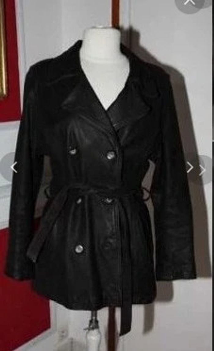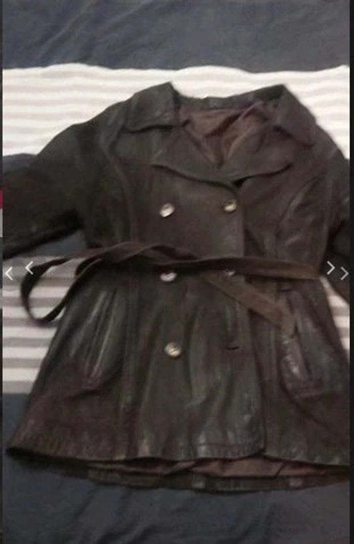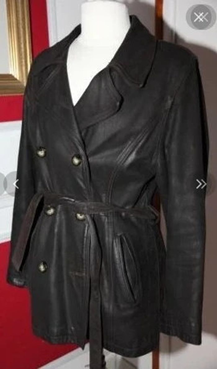 Veste manteau caban en cuir vieilli chocolat vintage t 38 40 - photo numéro 2