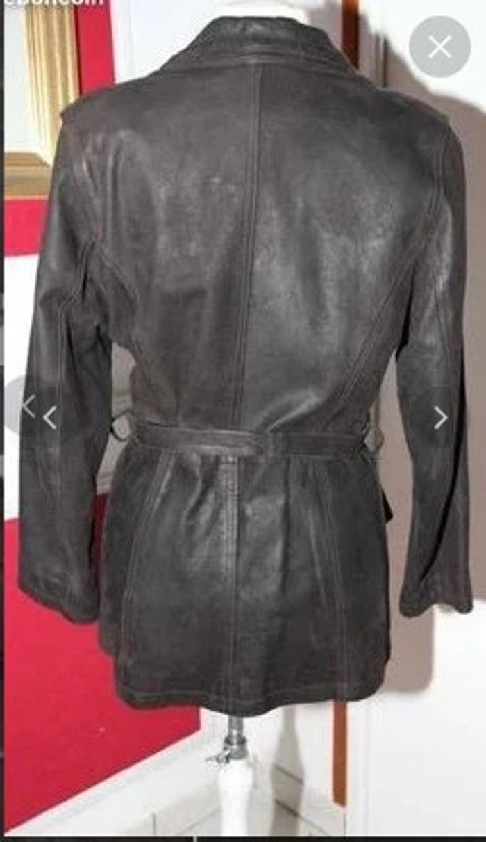 Veste manteau caban en cuir vieilli chocolat vintage t 38 40 - photo numéro 3