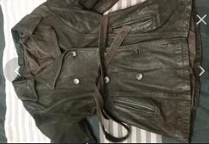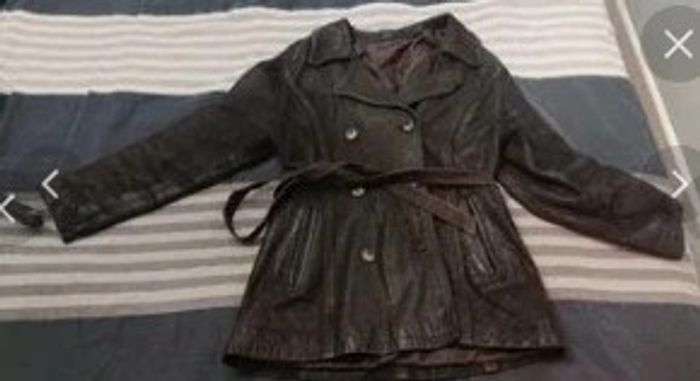 Veste manteau caban en cuir vieilli chocolat vintage t 38 40 - photo numéro 1