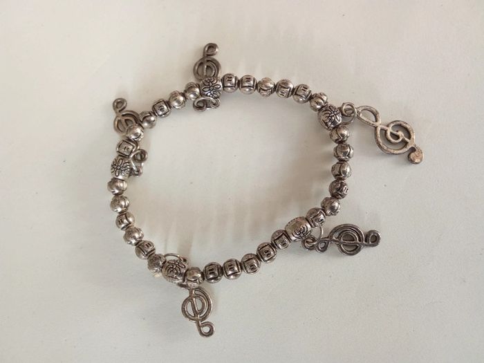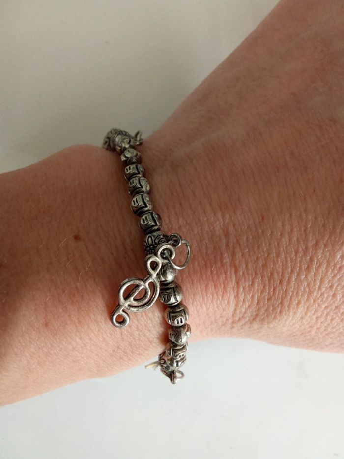 Super joli Bracelet argenté musique - breloques clef de sol #musique #music #musician #cledesol #llavedesol #solkey #elegant #bracelet #pulsera #wristband #musicien #classique #argente #fantaisie #bijou #breloques #dafnezbijou #dafnezado #dafnezbijou