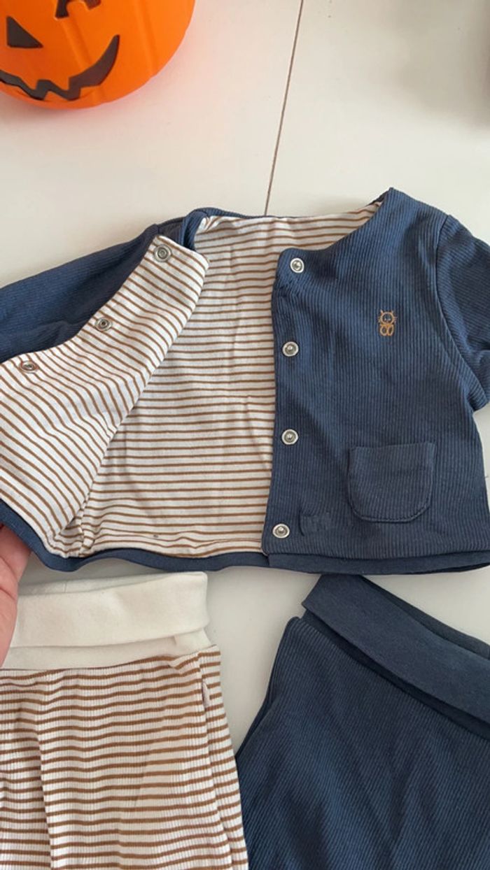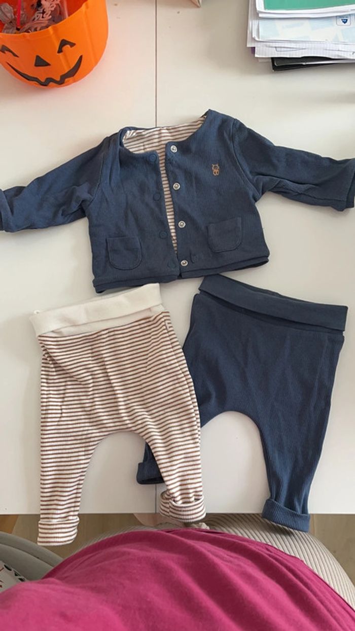 Ensemble composé de deux pantalons et une veste okaidi La veste est réversible Porte une fois 1 mois