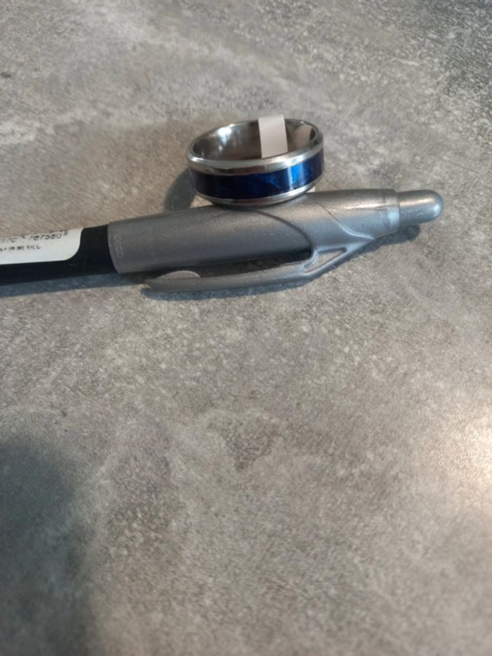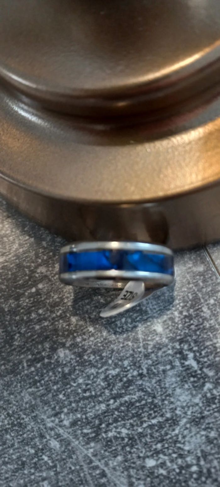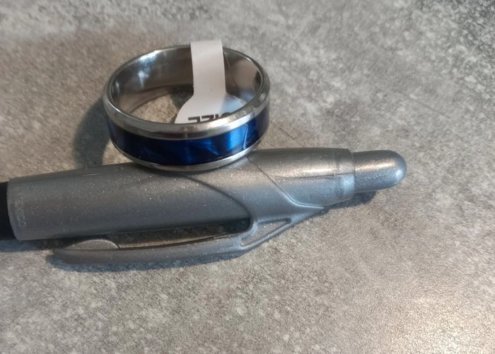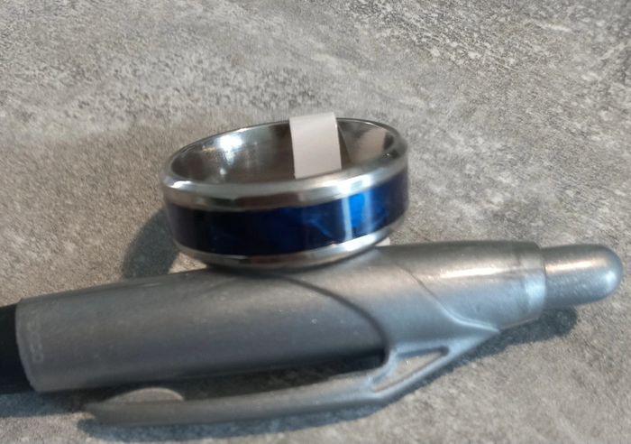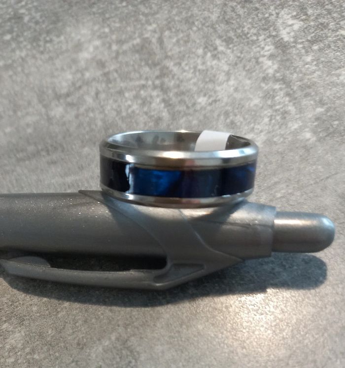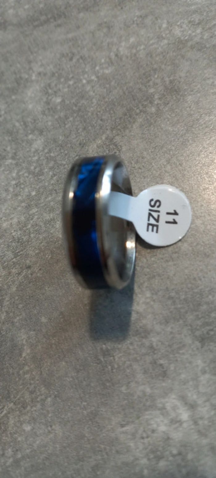 Bague homme en acier inoxydable argenté et bleu..taille USA 11...taille française =circonférence 64,6mm...diamètre 20,6mm...article neuf