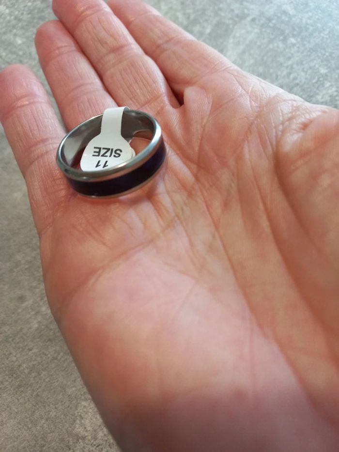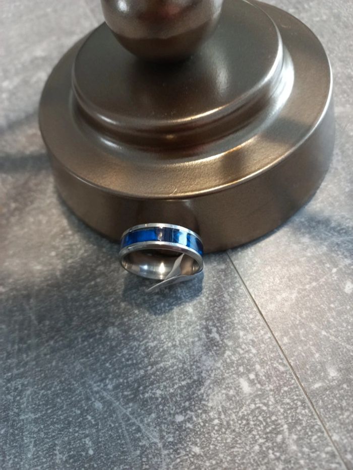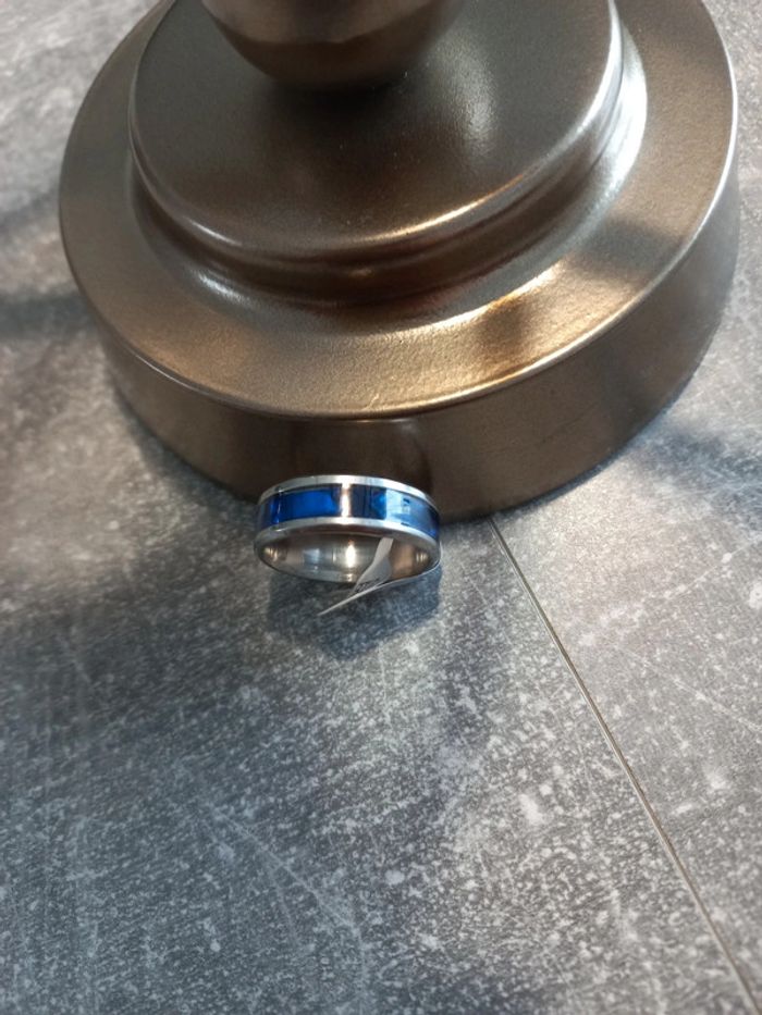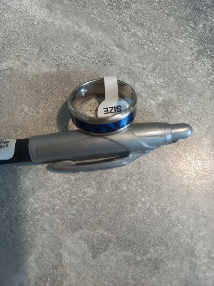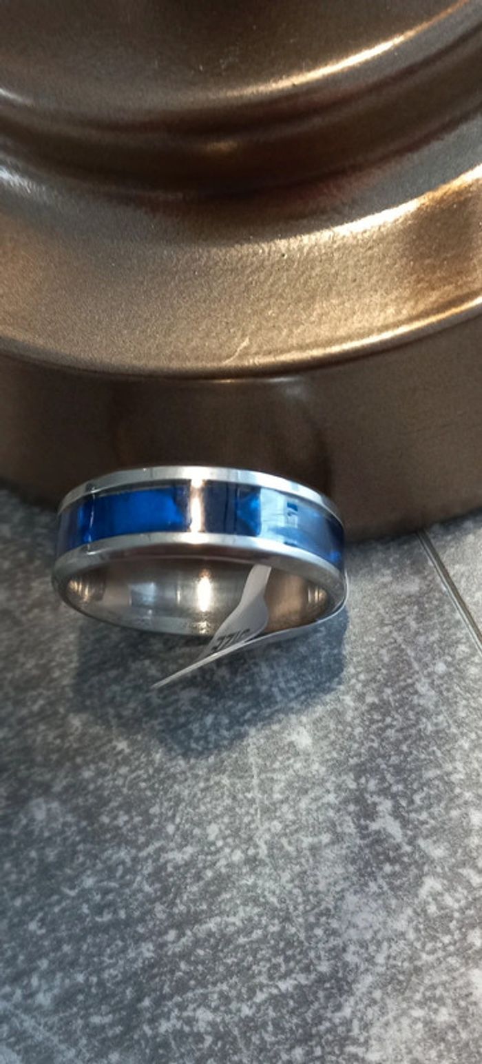 Bague homme en acier inoxydable argenté et bleu..taille USA 11...taille française =circonférence 64,6mm...diamètre 20,6mm...article neuf