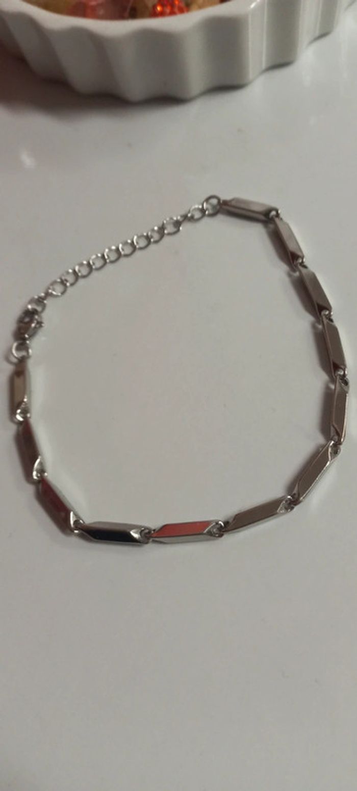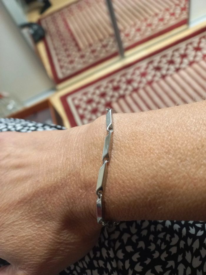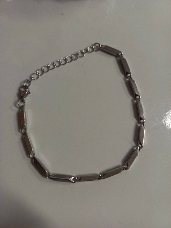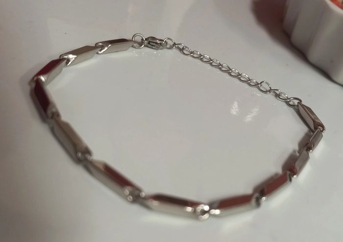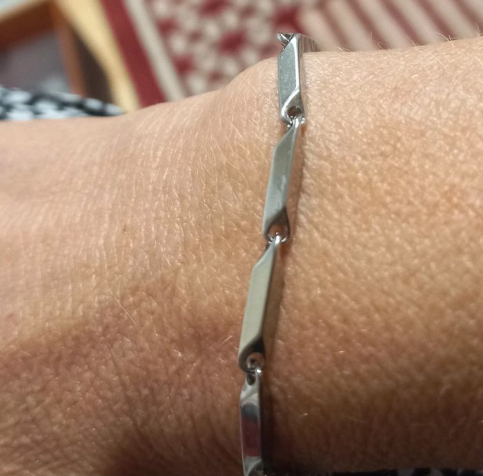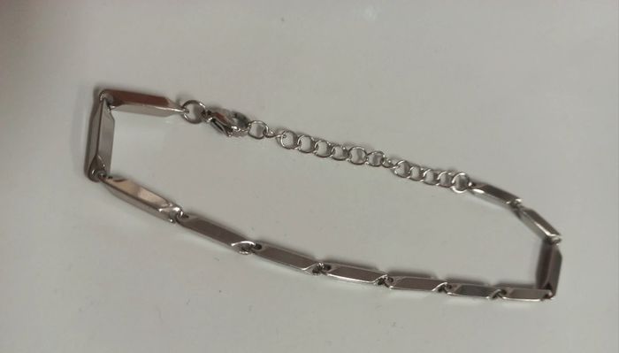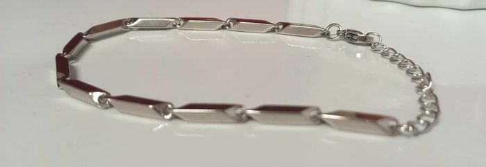 Bracelet homme en acier inoxydable argenté....maille originale...longueur attachée au plus long 24cm..réglable...état neuf
