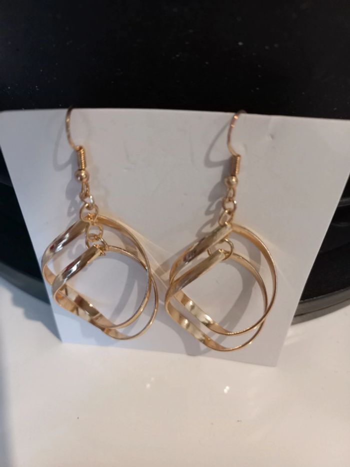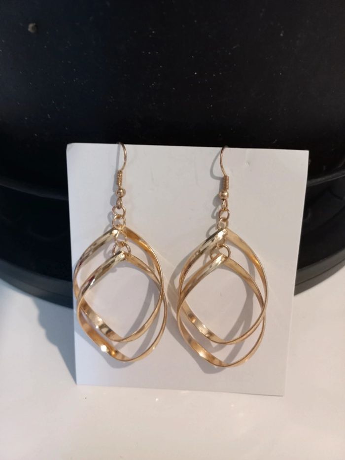 Très jolies boucles d'oreilles acier doré...longueur 7cm...
