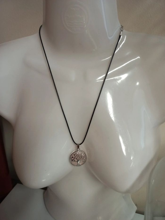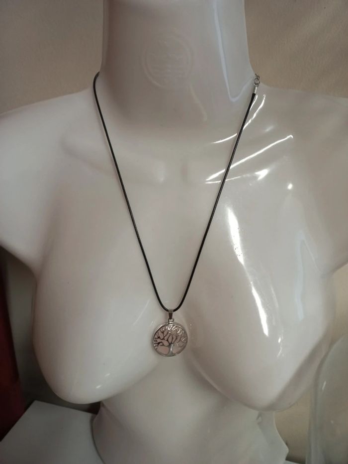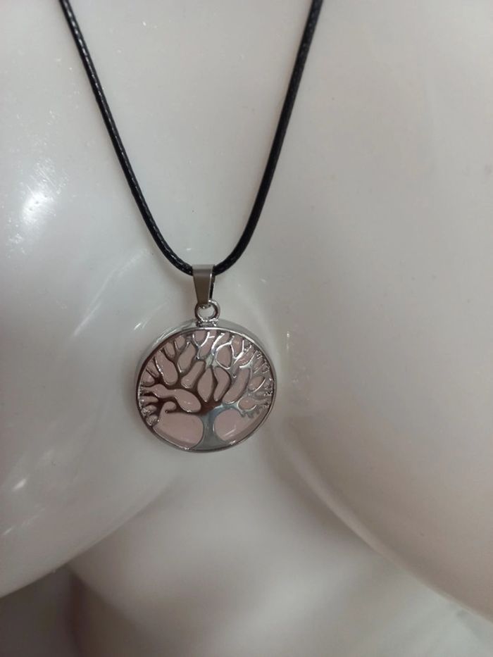 Pendentif arbre de vie rose quartz + cordon réglable jusqu'à 50cm