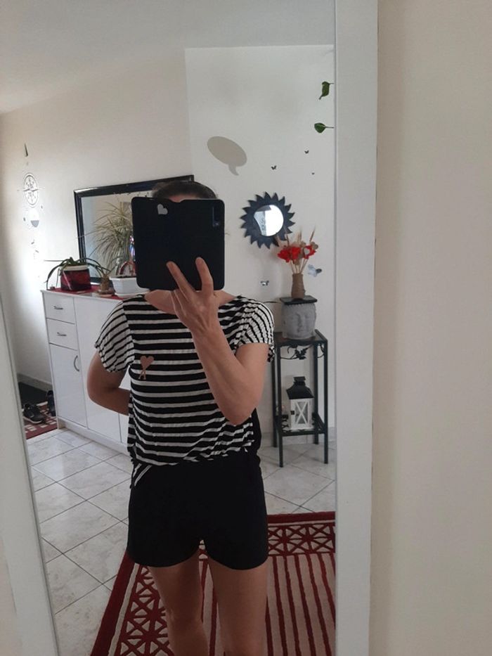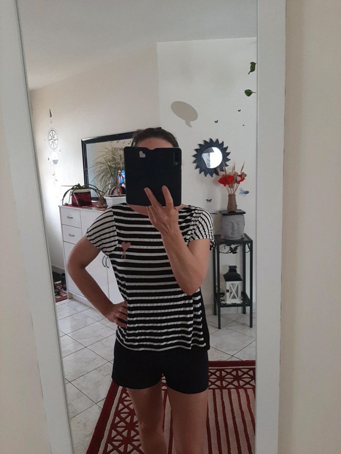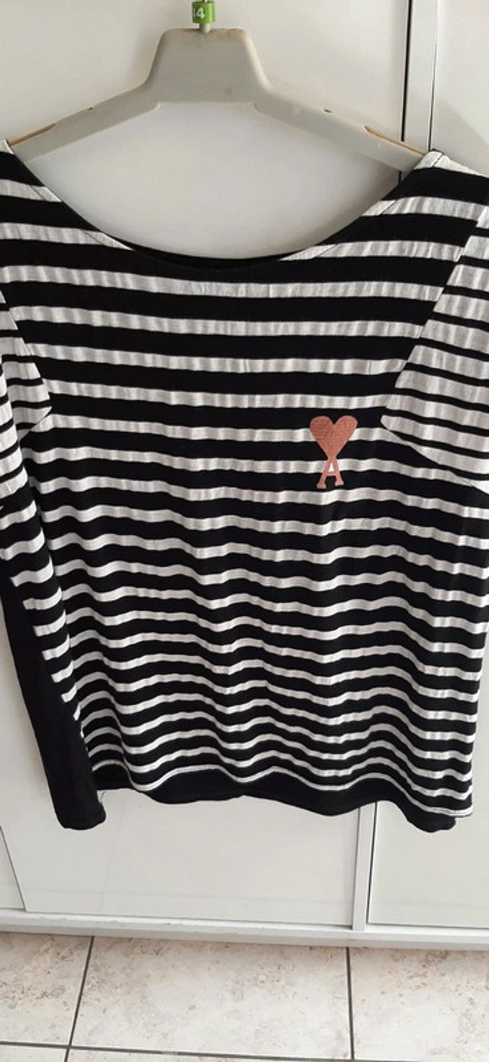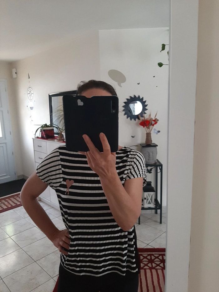 Marinière avec logo coeur très tendance..matière fluide et gaufrée