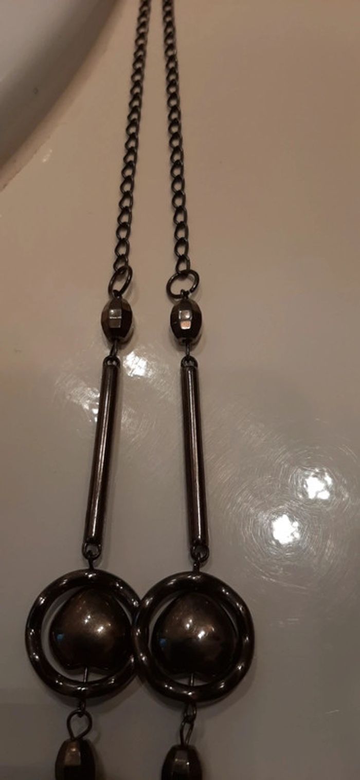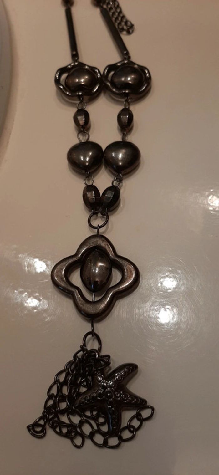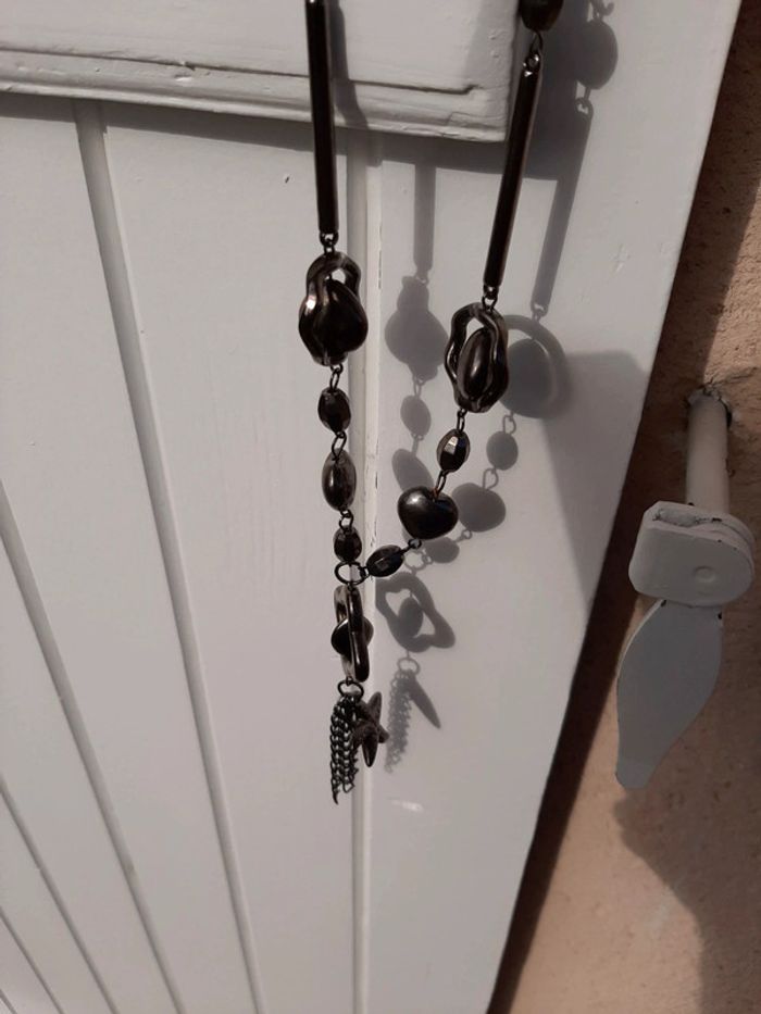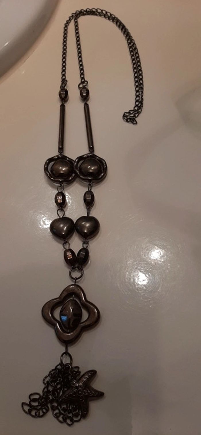 Joli sautoir fantaisie..Bon état...longueur en tout 47 cm...gris foncé
